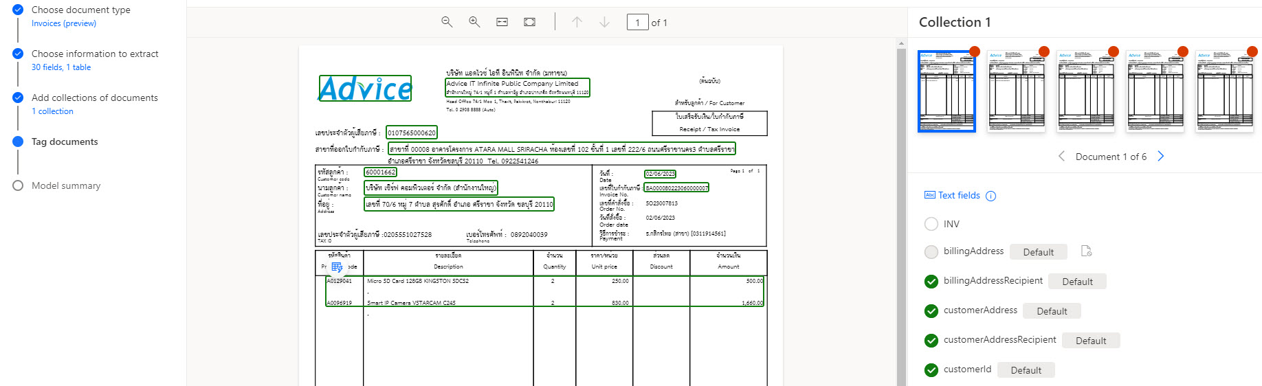ตัวอย่างการ Train Model เพื่อให้ AI เข้าใจ Document Invoice