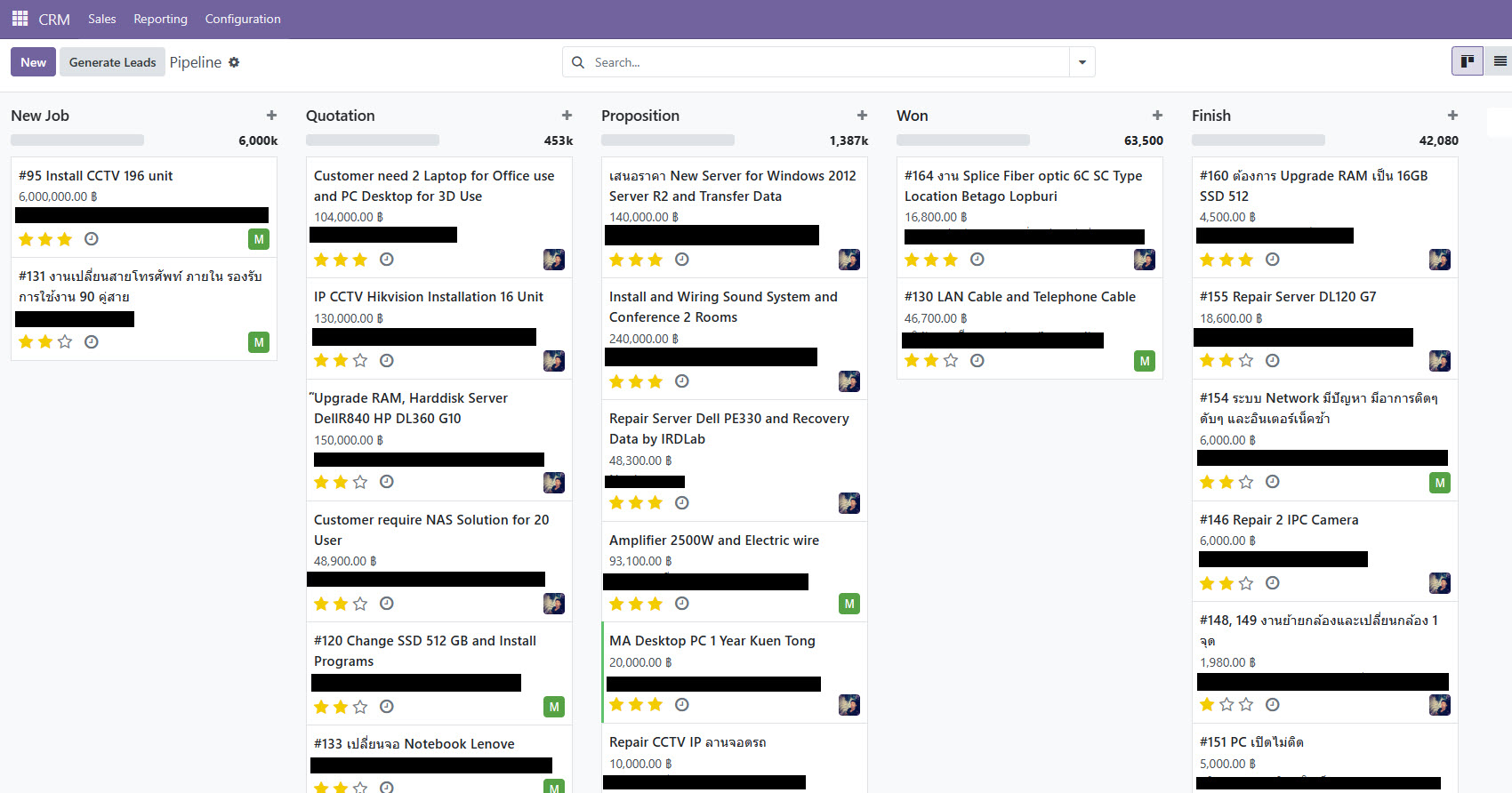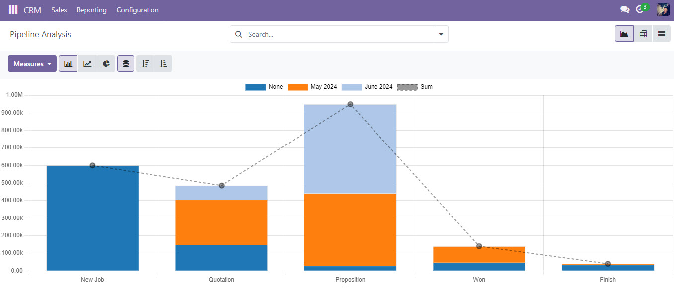 5. การวิเคราะห์ข้อมูลและรายงาน ข้อมูลทั้งหมดที่บันทึกในโมดูล CRM สามารถนำมาวิเคราะห์และสร้างรายงานได้หลากหลายรูปแบบ เช่น ผลการดำเนินงานของพนักงานขาย สัดส่วนยอดขายตามประเภทลูกค้า เป็นต้น ช่วยให้ฝ่ายบริหารมีข้อมูลในการตัดสินใจได้อย่างมีประสิทธิภาพมากขึ้น