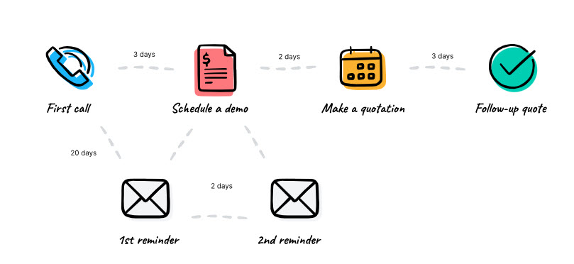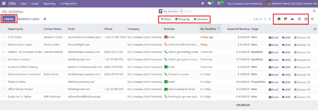 3. การวางแผนและติดตามงาน ฟังก์ชันการวางแผนงาน (Activities) ในโมดูล CRM ช่วยให้พนักงานสามารถกำหนดกิจกรรมต่างๆ ที่ต้องทำ เช่น การนัดหมาย การโทรศัพท์ติดต่อลูกค้า เพื่อให้การทำงานเป็นระบบและไม่พลาดขั้นตอนสำคัญ