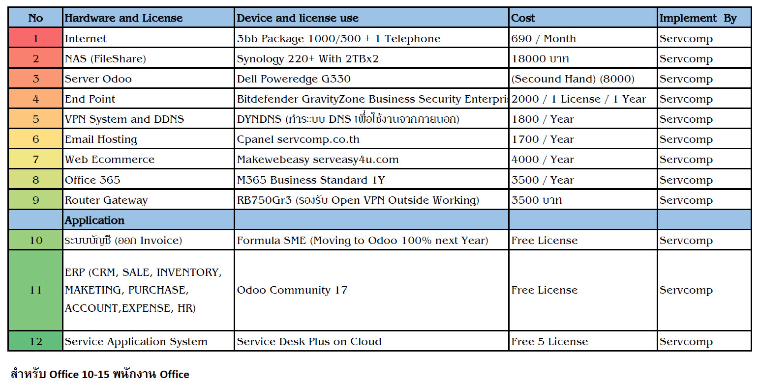 1. ระบบบัญชี (ออก Invoice)ซอฟต์แวร์: Formula SME (Moving to Odoo 100% next Year)