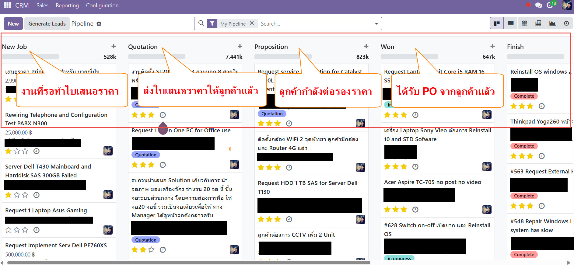 เมื่อทีม Sale ได้รับ Lead ลูกค้า หรือ Project ใหม่ ข้อมูลจะถูกบันทึกและจัดการภายใน Odoo CRM